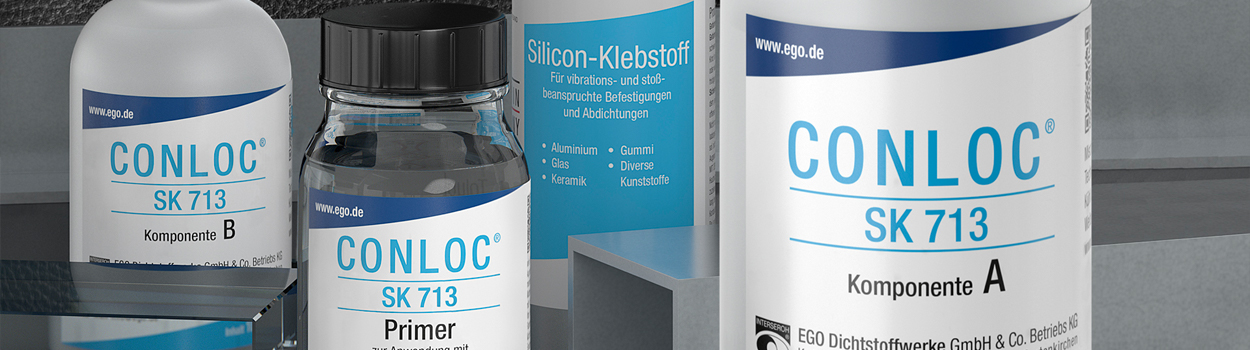 Posebno dvokomponentno lepilo CONLOC SK 713 je tekoča, prozorna dvokomponentna guma za lepljenje steko/steklo in za izdelavo oblikovanih delov z ulivanjem. Priporočena največja velikost/površina lepljenja je 600 x 900mm.