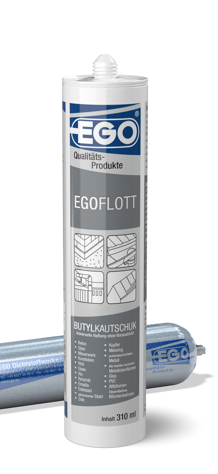 EGOFLOTT je enokomponentna tesnilna masa na osnovi butil kavčuka s polimeri, odpornimi na staranje, s plastično-elastičnimi lastnostmi (vsebuje topila, fizično se suši). EGOFLOTT ne vsebuje aromatičnih topil in bitumna ter ima dobro UV in vremensko odpornost.