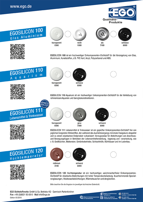 EGOSILIKON 120 je visokokakovostna enokomponentna silikonska tesnilna masa, posebej razvita za visoke temperature, ognjevarna specialna stekla in druge aplikacije, kjer se pričakuje obremenitev pri visokih temperaturah.