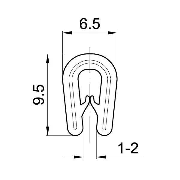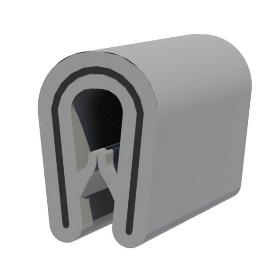 Ta robna zaščita (“U” profil) je izdelana iz črnega PVC-ja. Zelo priljubljena možnost za večino debelin robov. Uporablja se za zaščito pred ostrimi nepravilnostmi robov in za estetske namene. Uporablja se tudi za tesnjenje ali zvočno izolacijo. Zasnovana je za robove debeline od 1 do 2 mm. Jeklena objemka v notranjosti zagotavlja, da zaščita ostane varno na svojem mestu. Notranji rebri dodatno preprečujejo zdrs z roba in zgladijo morebitne neravnine.