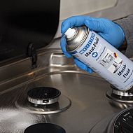 NEGOVALNI SPREJ ZA KOVINE ščiti, čisti in neguje tako kovinske površine kot tudi keramiko, les, steklo in plastiko. Ne raztopi jedkanih in potiskanih oznak ali plastičnih površin in gumijastih tesnil.