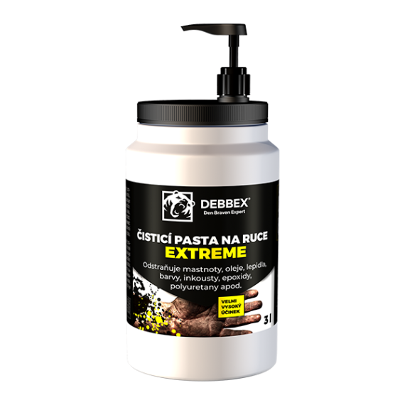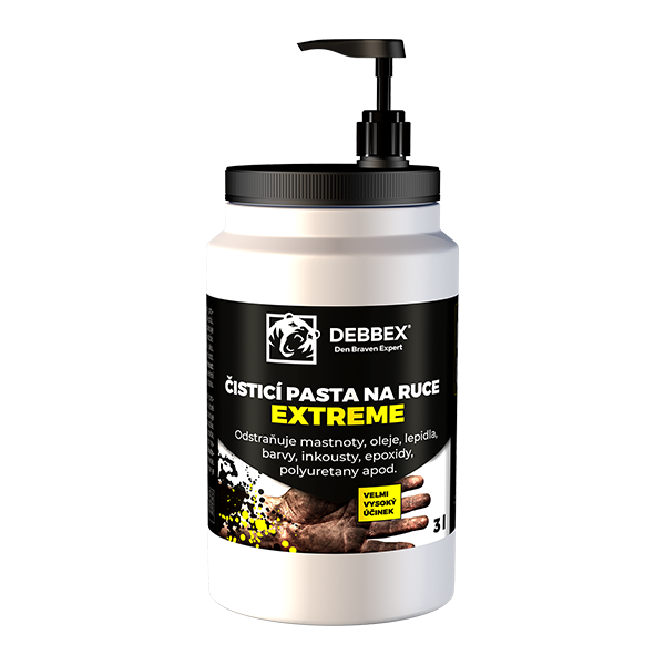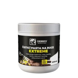 EXTREME čistilna pasta za roke, ki je kos tudi največji umazaniji. Z lahkoto odstrani barve, črnila, lepila, tesnila, poliester, smolo, poliuretan in ekstremne umazanije. Je brez topil, vsebuje naravna zrna iz orehovih lupin ter izjemno nežna do kože.