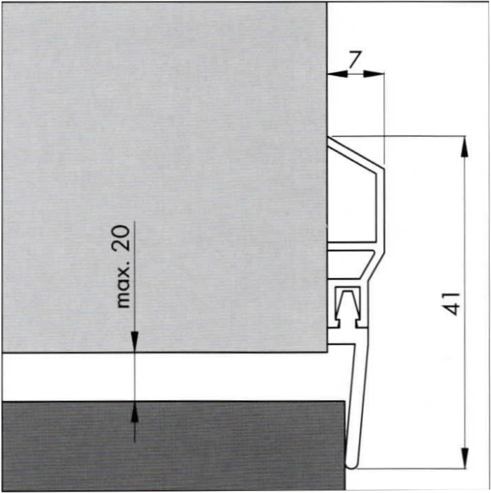 Profil PDS BASIC za zatesnitev vrat s višine 20 mm.